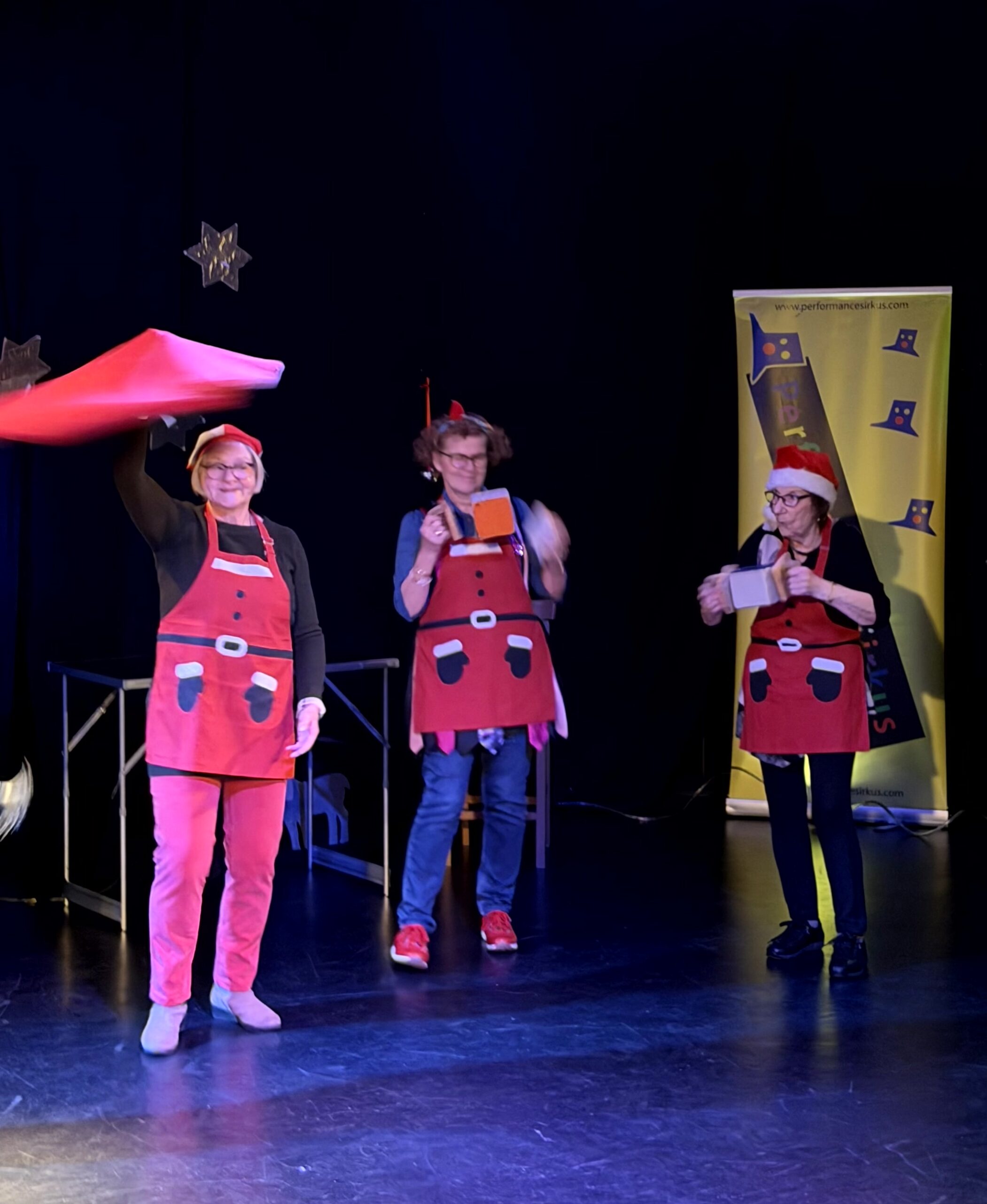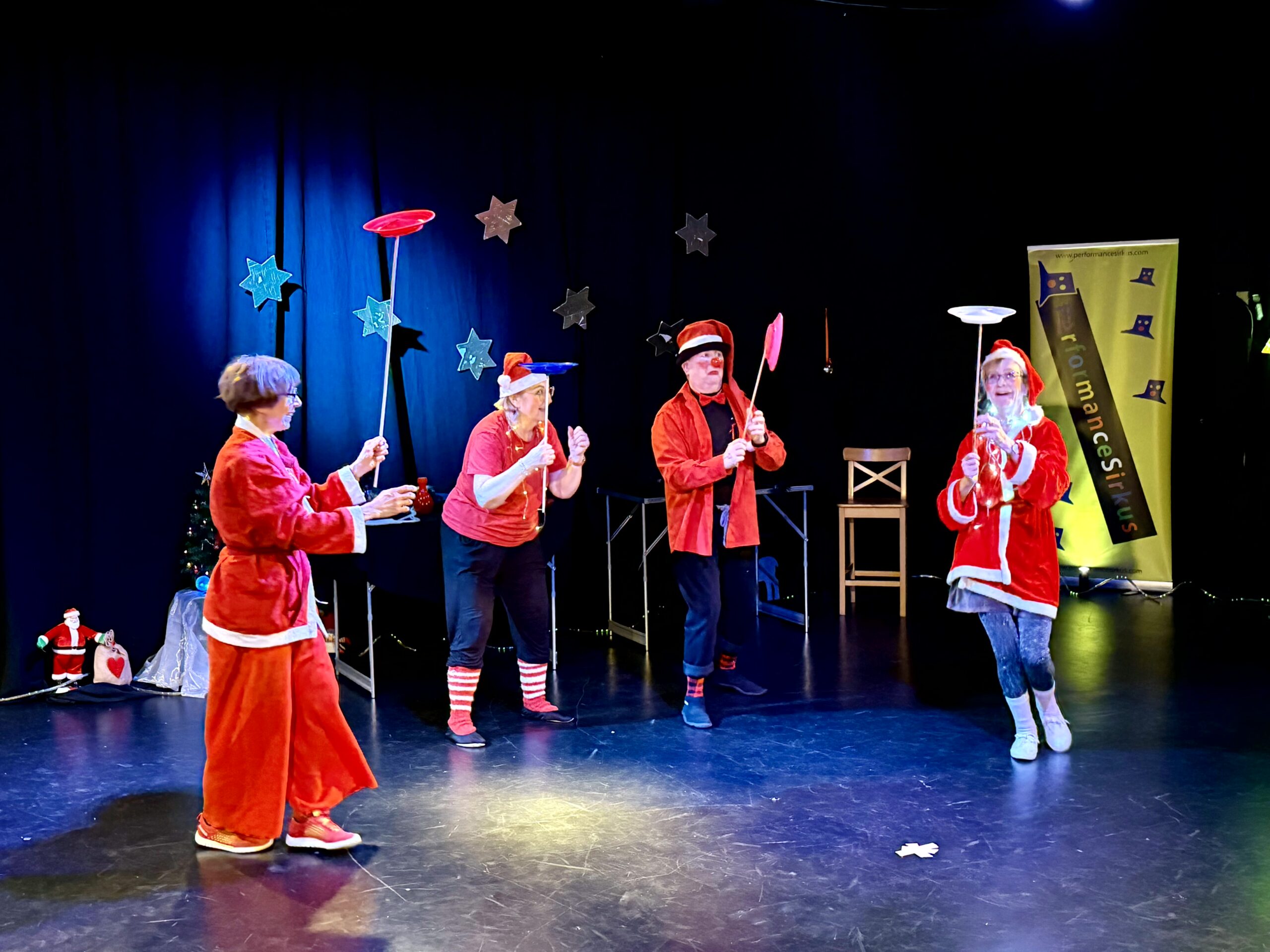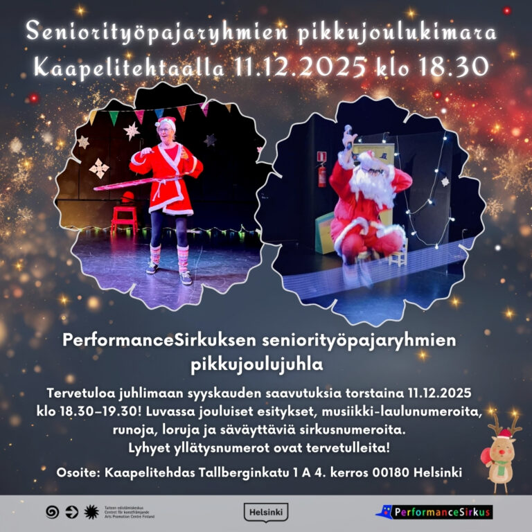 Joulunodotuksen keskellä meillä oli ilo kokoontua vielä kerran yhdessä, kun PerformanceSirkuksen seniorityöpajaryhmien pikkujoulukimara järjestettiin Kaapelitehtaalla torstaina 11.12.2025 klo 18.30–19.30.