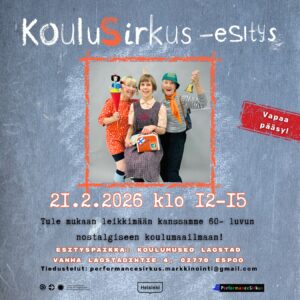 Tervetuloa juhlimaan uudistunutta Koulumuseo Lagstadia talvilomaviikon lauantaina! Luvassa on nostalgista tunnelmaa, sirkuksen taikaa ja iloista tekemistä koko perheelle. PerformanceSirkuksen seniorisirkusryhmä…